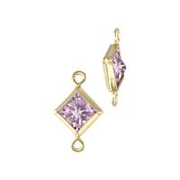 GF 4mm Pink Cubic Zirconia Square Bezel Set Connector With Perpendicular Ring